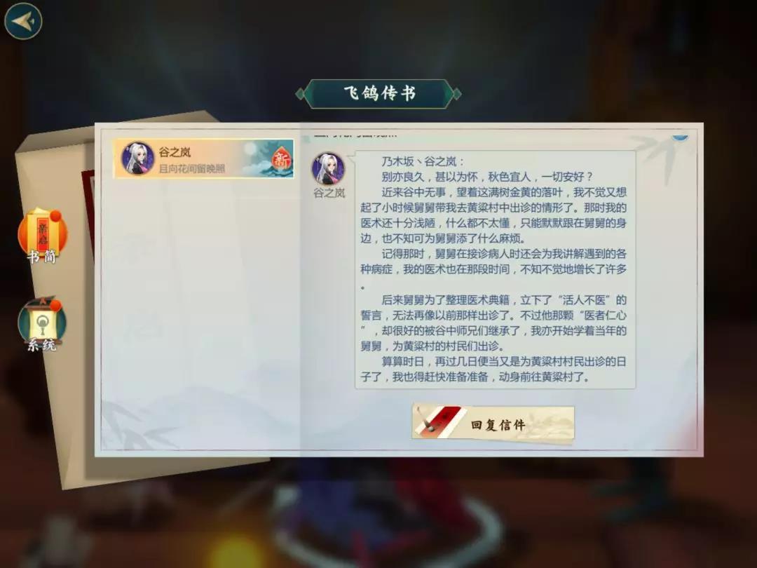 B.投其所好,送礼“套路”。少侠可以查看侠客物品喜好,赠送相应的礼物,促进好感度。比如雪莲是谷之岚喜欢的物品,少侠可以在稻香村、七秀碧霞岛、纯阳九老洞和少林藏经阁等地采集而来。C.回信恰当。有的侠客“飞鸽传书”,少侠需要做出选择回答。回信的选择一定程度上影响羁绊任务的进程噢~