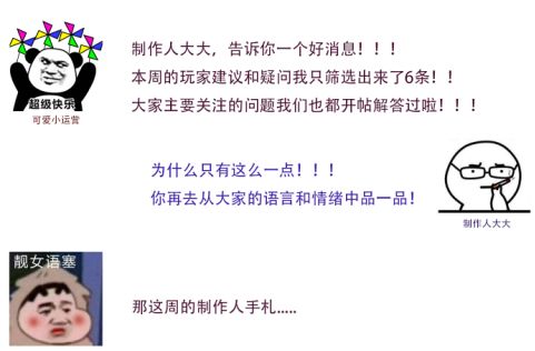由于本周的问题不够,导致《制作人手札》内容不足 /(ㄒoㄒ)/~~