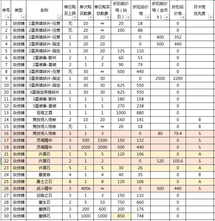 1.2 月卡党杂货铺购买物品优先度评级