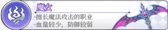 魔女属于魔法特化职业,卡牌多以魔法攻击为主,辅以比如:魔抗降低、魔攻提升、魔防提高等一些异常效果和buff,战斗能力偏向于输出,异常效果和buff多数都是增加自己输出能力的效果。