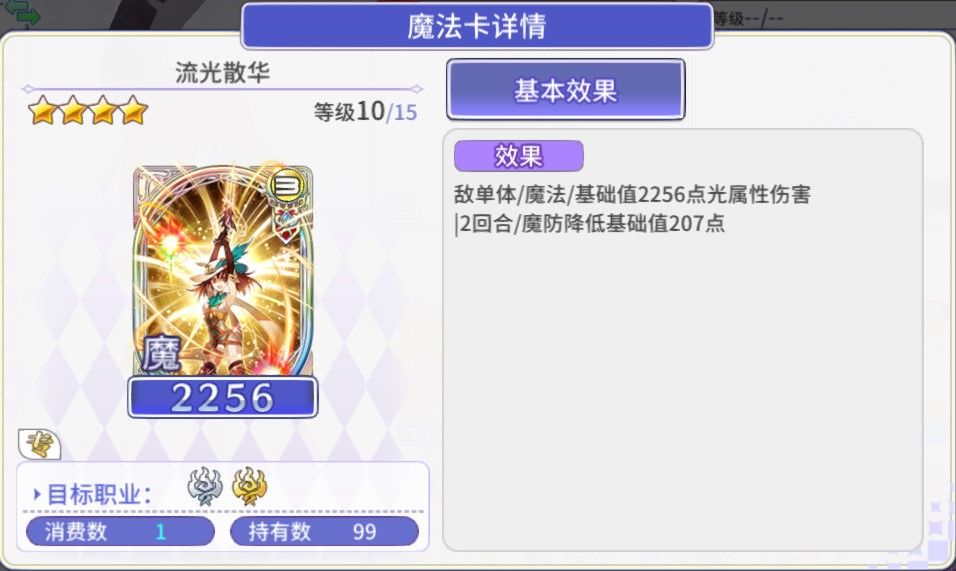流光散华可以降低魔抗,同时提供不俗的光属性多段伤害,而且3c的消耗,算是前期必带的卡牌。可以在光属性的花园副本中获取。