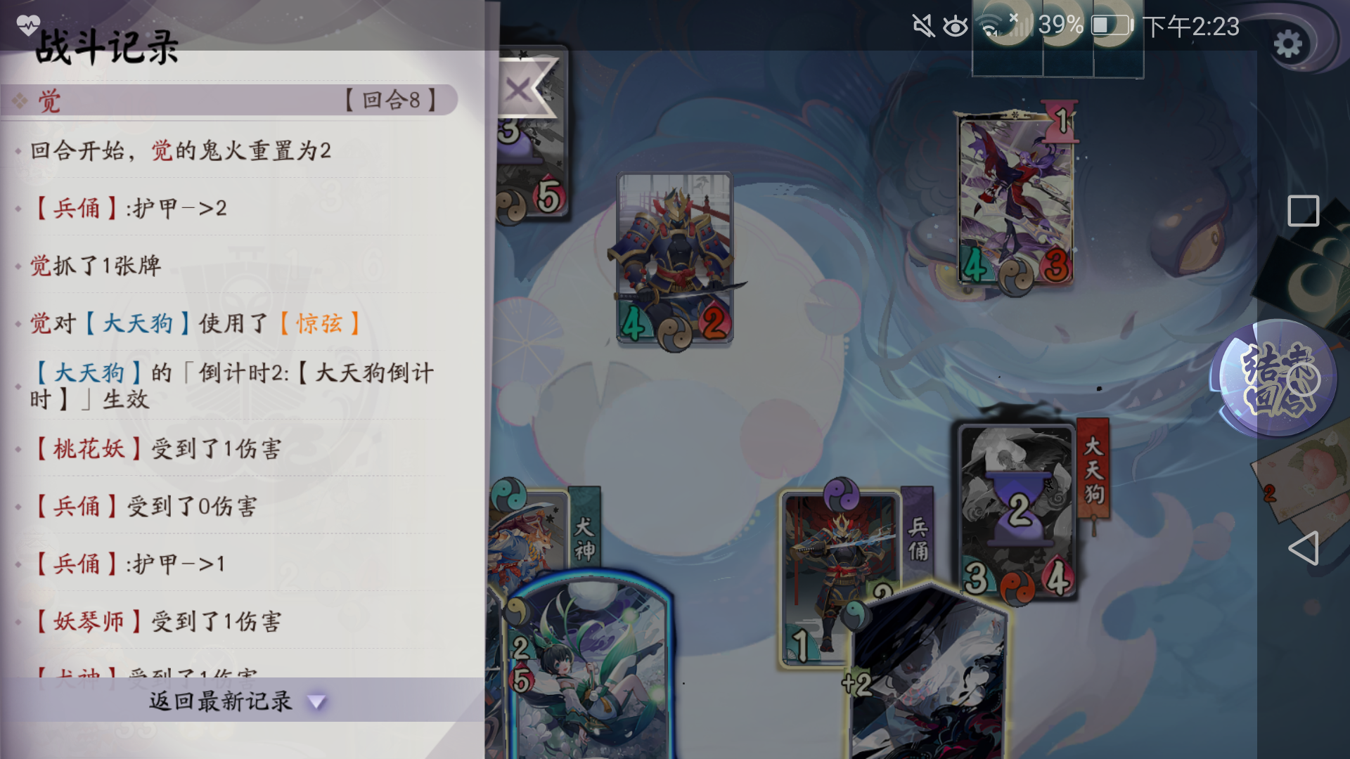 分享一下我今天奇怪的怪诞经历,打到觉时(不是第八关的觉),前几个回合中,对面兵勇不动如山把我压的死死的,我的大天狗打过了天狗风乱。在觉的回合八时,对面犬神桃花妖只剩一血了,就在这时!!!觉的妖琴师对我方大天狗使用惊弦,我方大天狗六点伤害准确地打到了犬神桃花妖,然后觉的被动(大概是己方式神死亡时,对敌方随机单位造成一点伤害)准确地打到了我的两血大天狗,然后大天狗死了……我都惊呆了,幸亏对面妖琴师的神助攻,瞬间扭转局势,我后面打得十分顺利٩( 'ω' )و