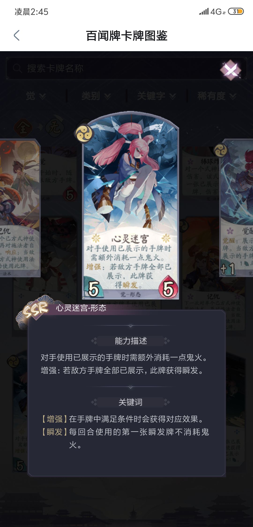 ,并且可以配合青坊主被动随机打1。熬过中期后,觉开觉醒和心灵迷宫后,对手每回合如果使用明牌会直接扣除2点火,起到恶心对手压制的作用,并且在恶心过程中不断成长在后期达成击杀的效果。