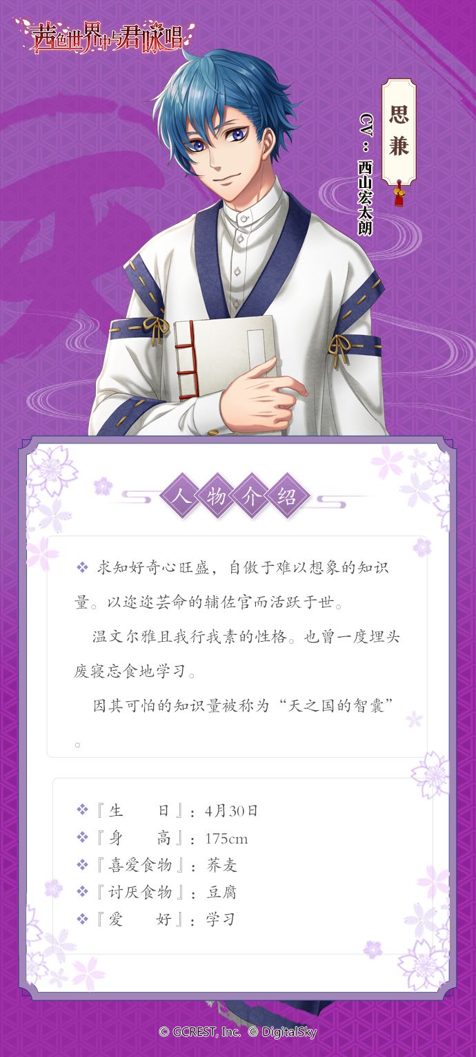 思兼喜爱学习,有着强烈的求知欲,与此同时也因其惊人的知识量,作为迩迩芸命的辅佐官活跃于世,深受大家的信赖。