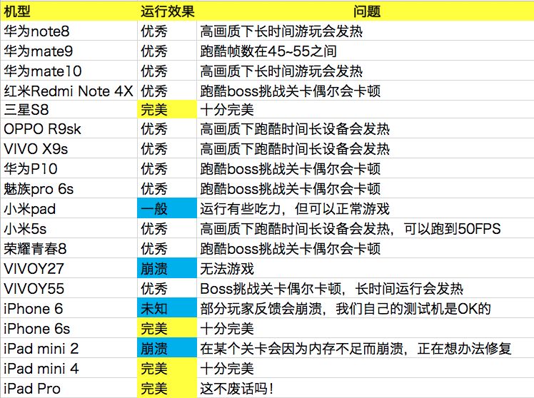 基本上内存达到2G,CPU麒麟655、骁龙625,就可以跑。845什么的就不用说了,高画质满帧率。