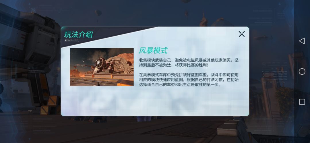 本人喜欢玩风暴模式,就跟吃鸡一样捡捡东西,发育发育,首先风暴模式可以单排,双排,如果有条件可以双排玩,游戏乐趣很大,下面我就说下我这十几个小时的游戏心得哈,不喜勿喷,风暴模式开局,推荐第三个模型,因为前期还是捡东西为主,选择4个腿虽然可以跳但是前期还用不到(中后期用腿不要用轮子, 轮子打架不好控制),而且还鸡肋,等捡了东西,不推荐大家手动一下一下去改,很浪费时间,虽然可以上天上去改,但是你们永远不知道等你下来的时候有几个人在守着你,游戏里,改装界面左边有一个蓝图标志,新手玩家必须要研究的东西,如果不研究你就会知道有多么痛苦,蓝图没必要百分之百就使用,百分之60-70就可以使用了,蓝图是提前编辑好的,进游戏的时候直接捡到蓝图编辑的武器,自动使用就好了,如果大家不知道蓝图怎么编辑,一会我上图给大家推荐一下我得三款蓝图,第一个是机枪手,双机枪加霜鸟,双机枪是为了无限开火没有技能CD,霜鸟是为了定住敌人,第二个就是榴弹炮(名字是自己想的,脑洞嘛都得有)我配置是的双老派左轮,加霜鸟,我曾经用霜鸟定住贴脸老牌左轮一V3,谁用谁知道,第三个配置我叫他鹰眼,配置是双天罚,加狙击枪,这个配置一般是前期,后期用,前期杀人,狙击枪杀人,天罚找人,后期决赛圈了找不到人用天罚去找,或者自己藏好用天罚阴人,一击致命,如果感觉对手发现你了,不要犹豫,直接切换榴弹炮就是我刚说的第二形态,(这就提现到蓝图的作用了一键切换形态)不要怕,就是干,霜鸟定住老派左轮疯狂输出,拿下比赛,还有就是占点模式如果可以的话,可以前期装一个隐身,去偷路空车,别管空投车好不好直接拆除,然后跑路,然后你就会发现,你相当的肥,因为空投车配置奇形怪状,没有达到最佳所以推荐拆除,用自己的模型上自己的武器,本人也没玩太久所以更深入的就不懂了,我写这个只是写给入门级的新手玩家,给玩家们带带路,老玩家看我哪写得不对,或者有补充的欢迎评论,讨论中一起成长。