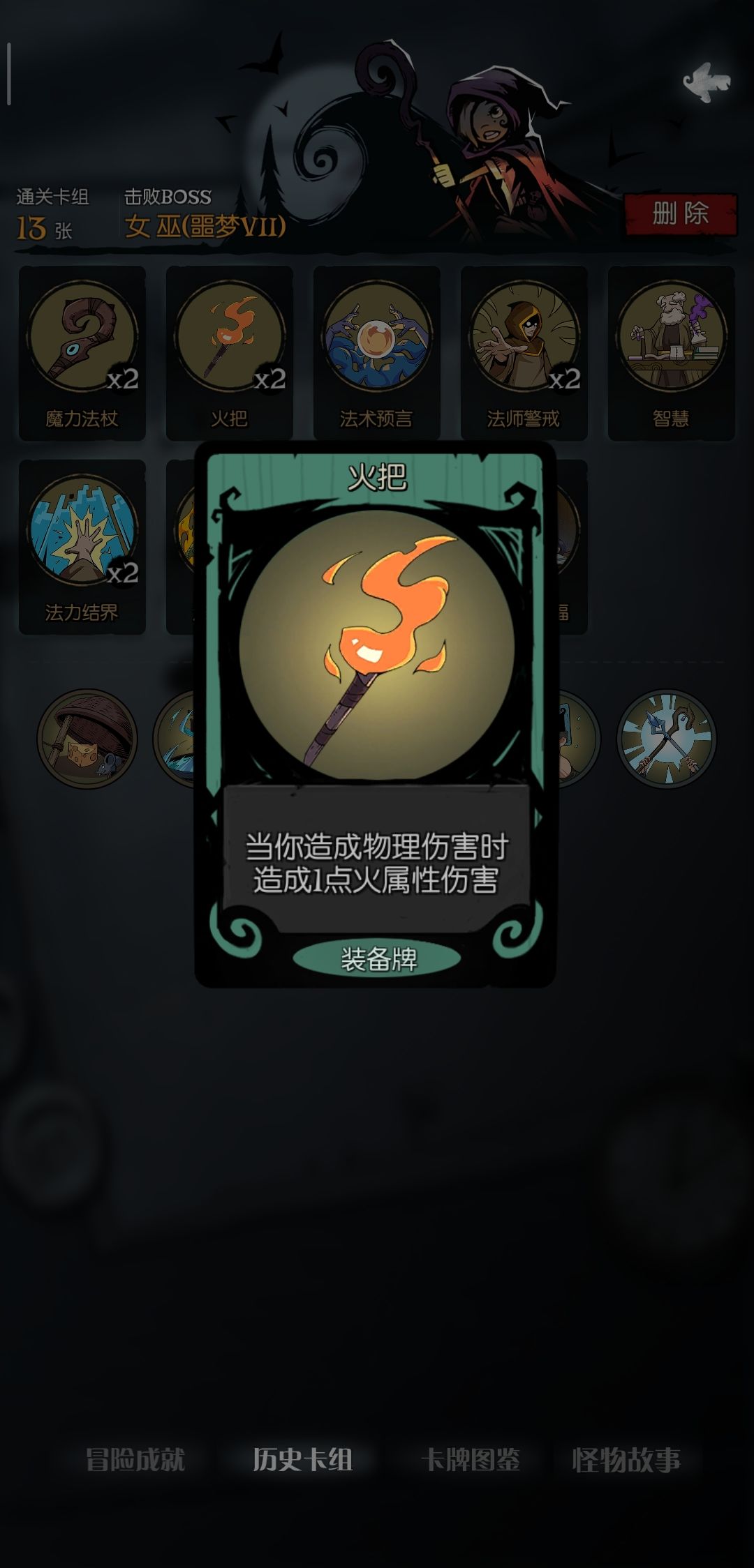 这个流派非常简单:拿上火把即可成形。其他的就拿法力牌,甚至你可以用初始自带的那几张垃圾法力牌。