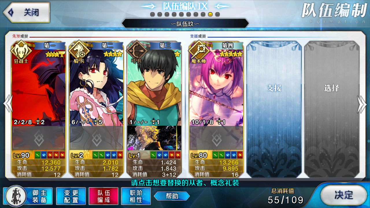 (ps:我这里放的位置有问题,应该是助战在三人队里,因为我cba技能差一点……等等好像也没问题,对不起我迷了,但就是那个意思,今天开始迫害大英雄吧!!!)