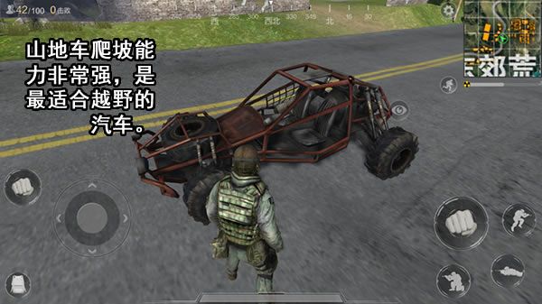 分析介绍:这是游戏内最适合越野的载具,爬坡性能优异,速度也比较快。山地车可以同时由两人乘坐,但车的防护性能较差,尤其是坐在后排的玩家非常容易被击中,可能会成为活生生的肉盾,因此山地车比较适合用来赶路。