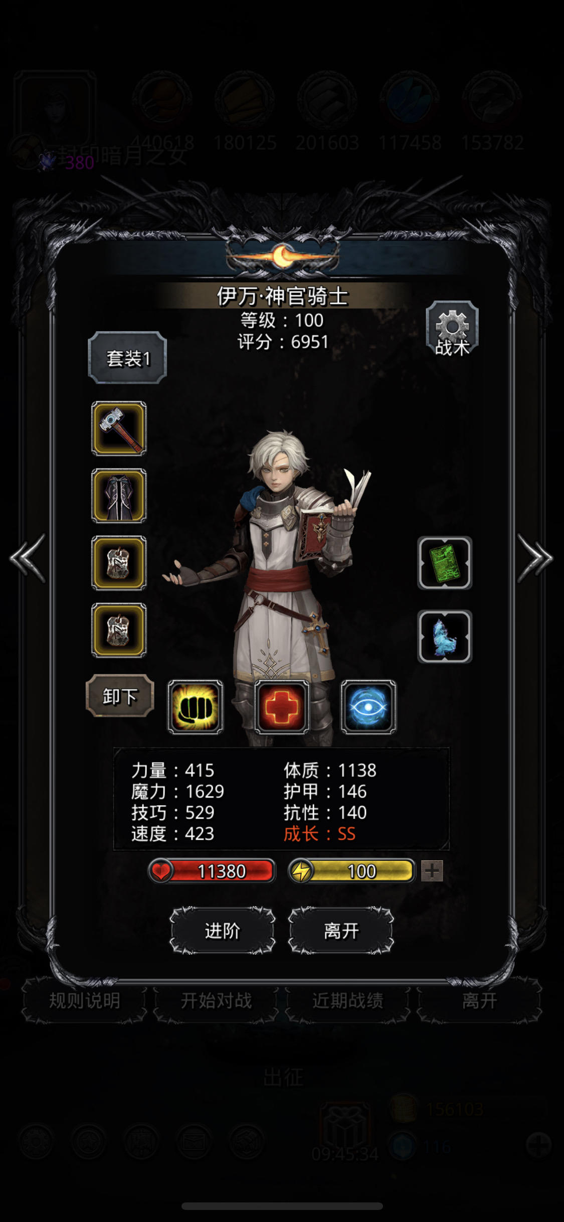 黑骑主堆护甲体质,带先发战利品,过了图16的小伙伴应该都有一个,穿法袍是为了防止上来被先发的法师秒掉,战术设置始终嘲讽开盾击。