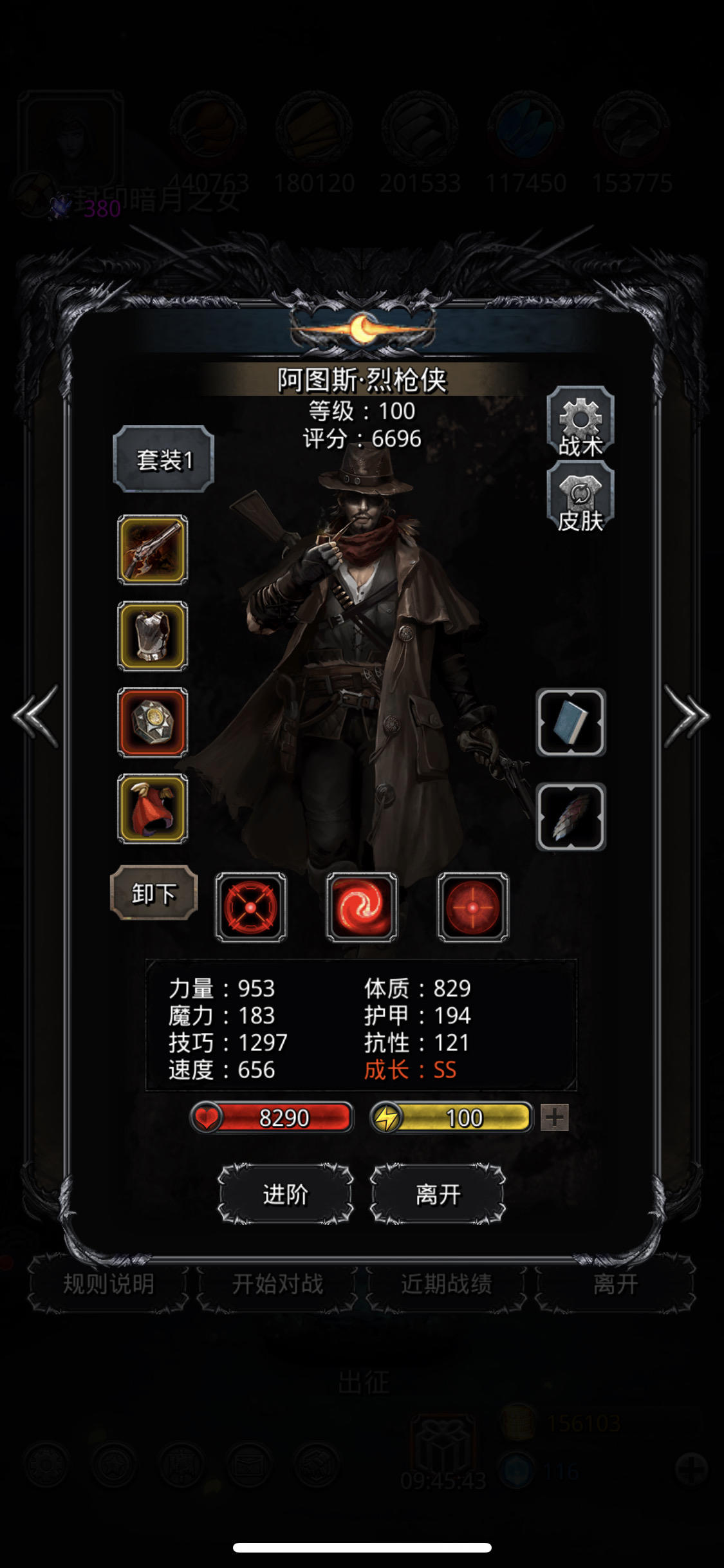 烈枪主堆命中技巧,力量差不多就行,竞技场很看力速比,在两边都有先发的情况下力速比低的出手更快,只要能保证枪枪命中输出就不会低,有浩劫跟先发更好,没有就带蓝宝石遗迹戒指等,记得放圣枪左边,只开破甲狙击。