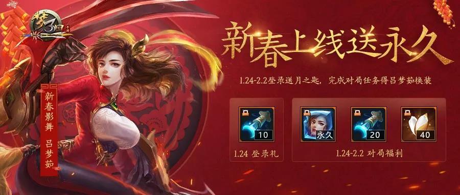 春节好礼大爆料,吕梦茹换装【新春影舞】免费送,完成任务并登录游戏30把月之匙免费领!