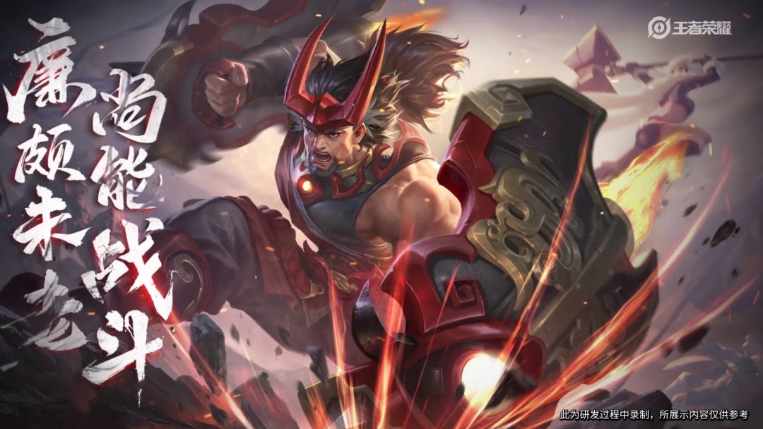 为了强调廉颇“重返巅峰”的感受,,在美术设计上,着重突出他“猛将”的形象,赋予他更多“勇猛”、“坚毅”的属性。
