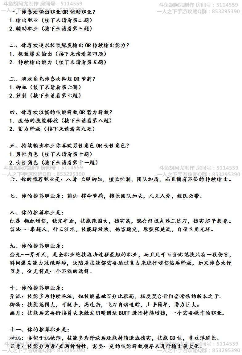 不管是日常直播还在群里交流,每天太多人问我到底哪个职业好?玩什么职业牛皮?你这就是等于问我李冰冰和范冰冰让我选谁一样,关于职业选择我一直觉得个人主观看法不能代替全部人的想法,机智的我把职业进行细致化分类,以答题的模式方便大家选择,仅供参考,以个人上手体验为准哦。