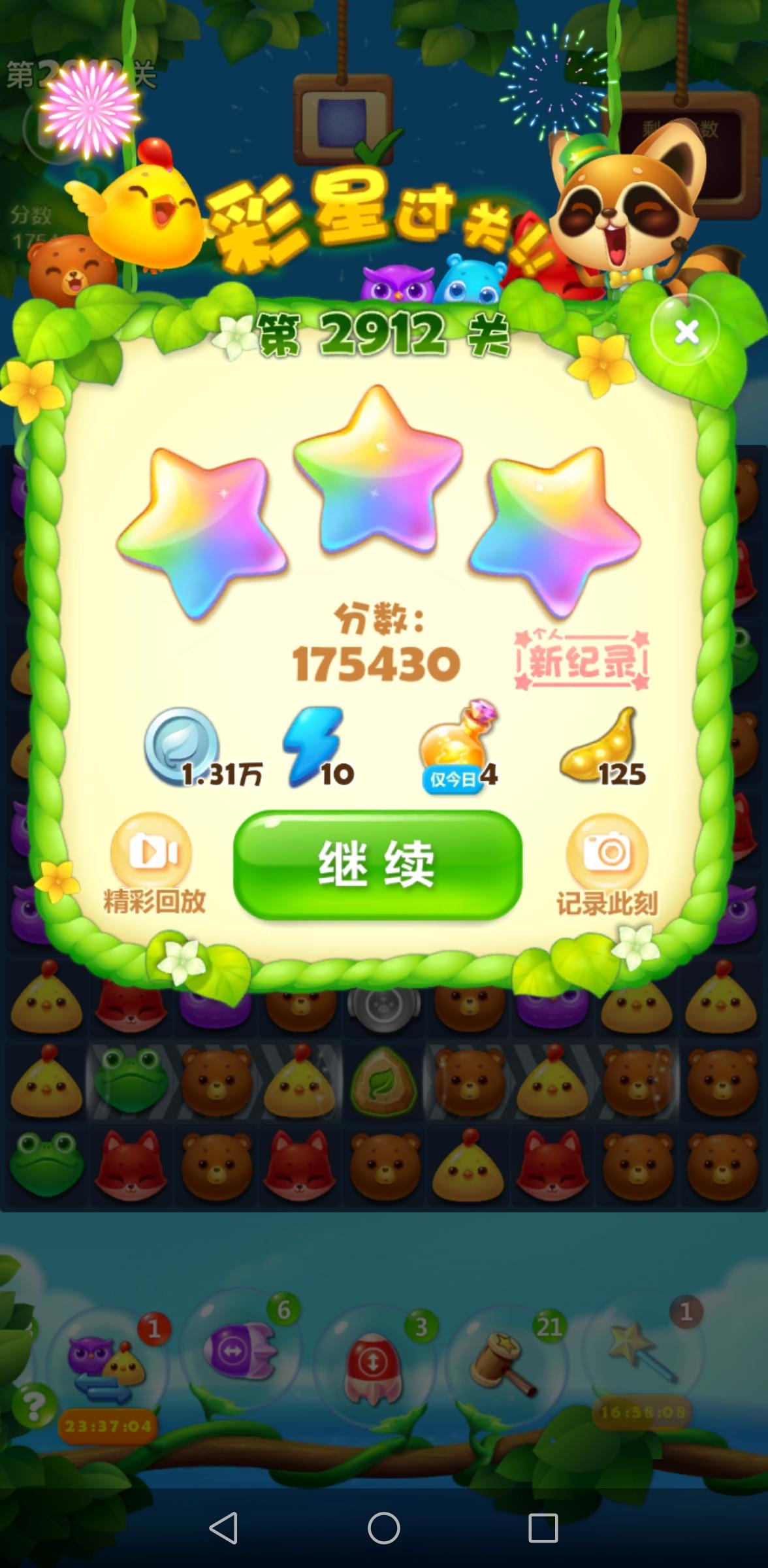 2912关铺牛仔裤,关卡难度一般,彩星分数比较容易上彩,记住尽快打爆蜜罐🍯,把位置都空出来,然后就是表演时刻了,组个鸟,用个魔法棒,轻松过关