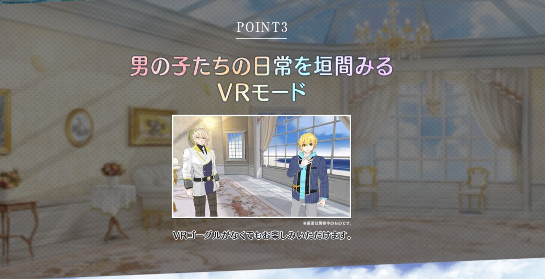 游戏还加入潮流的大热门“VR”模式。可以在游戏中使用VR模式与男性角色互动、日常。