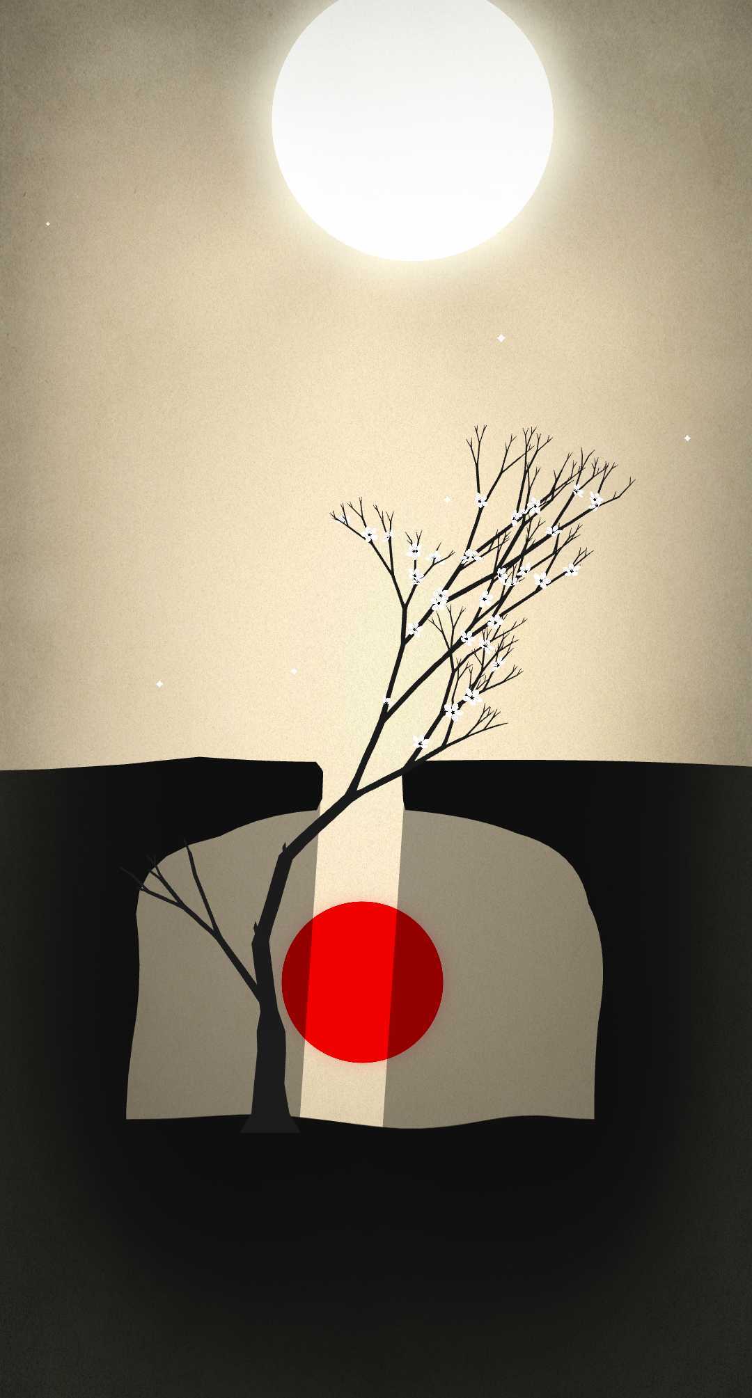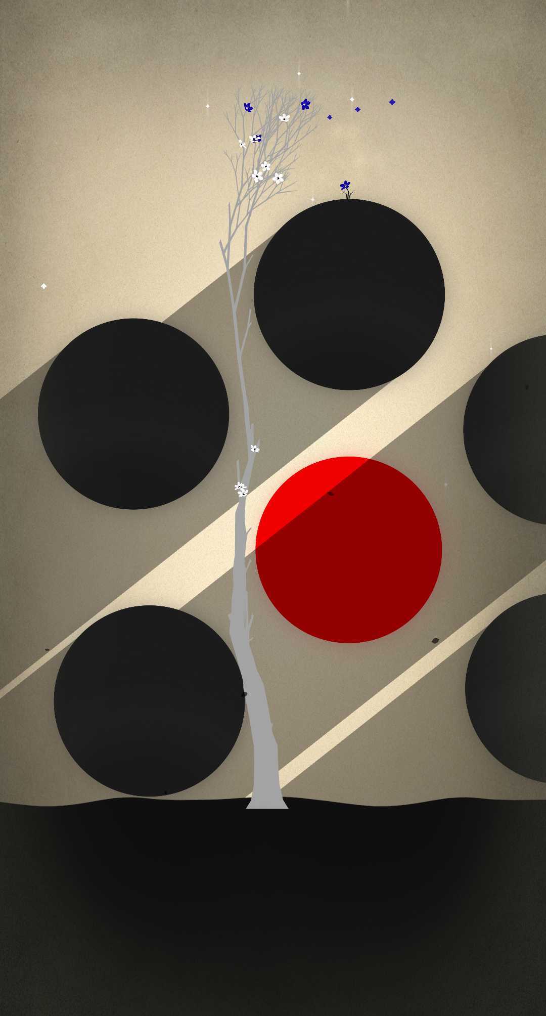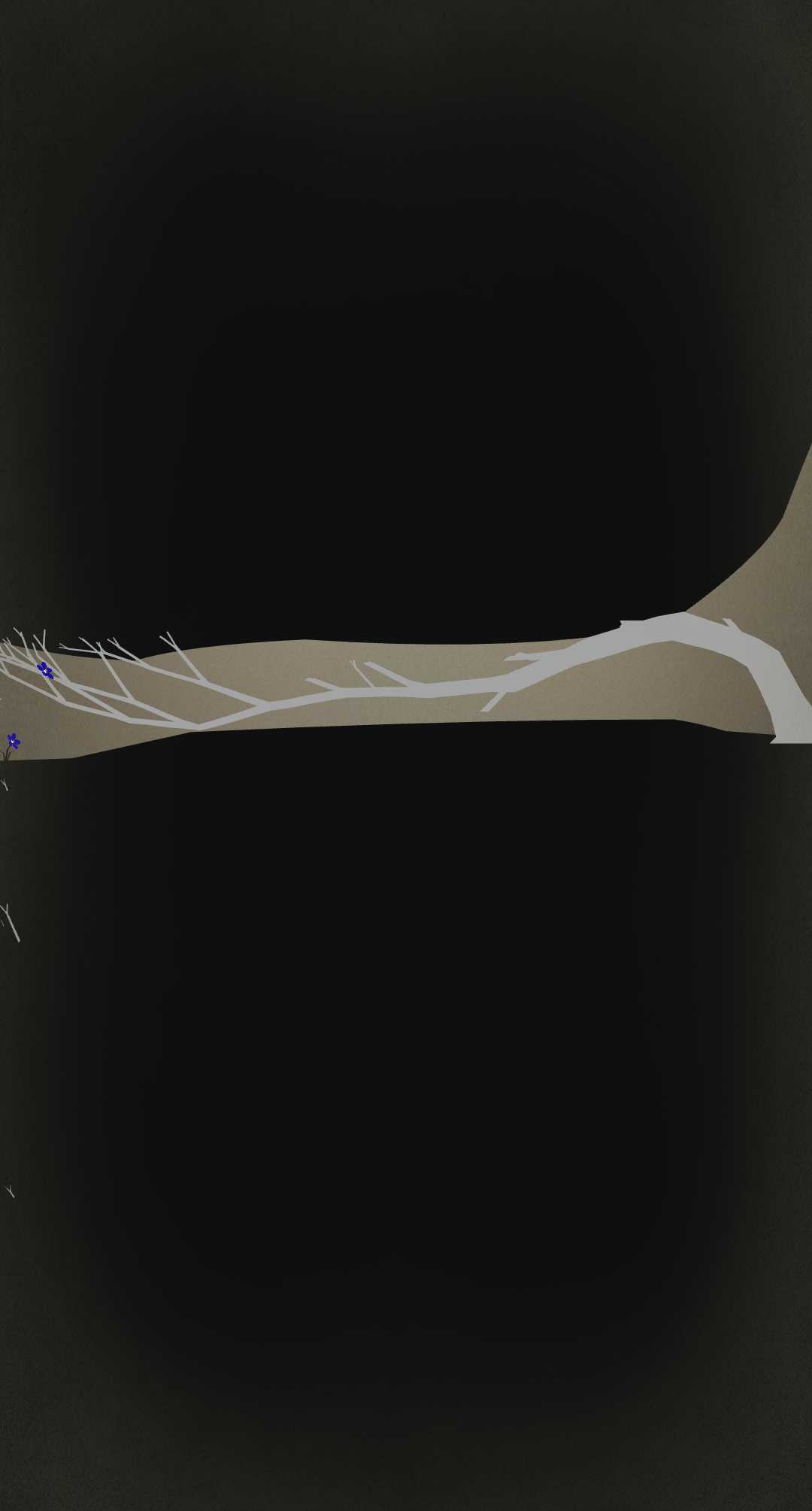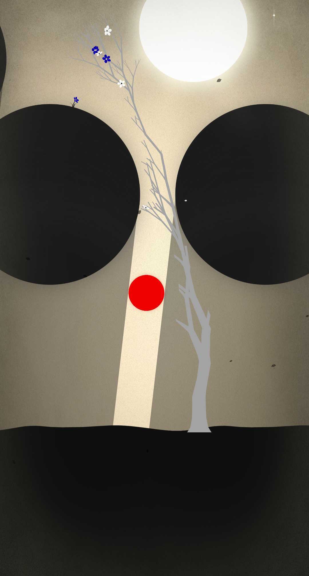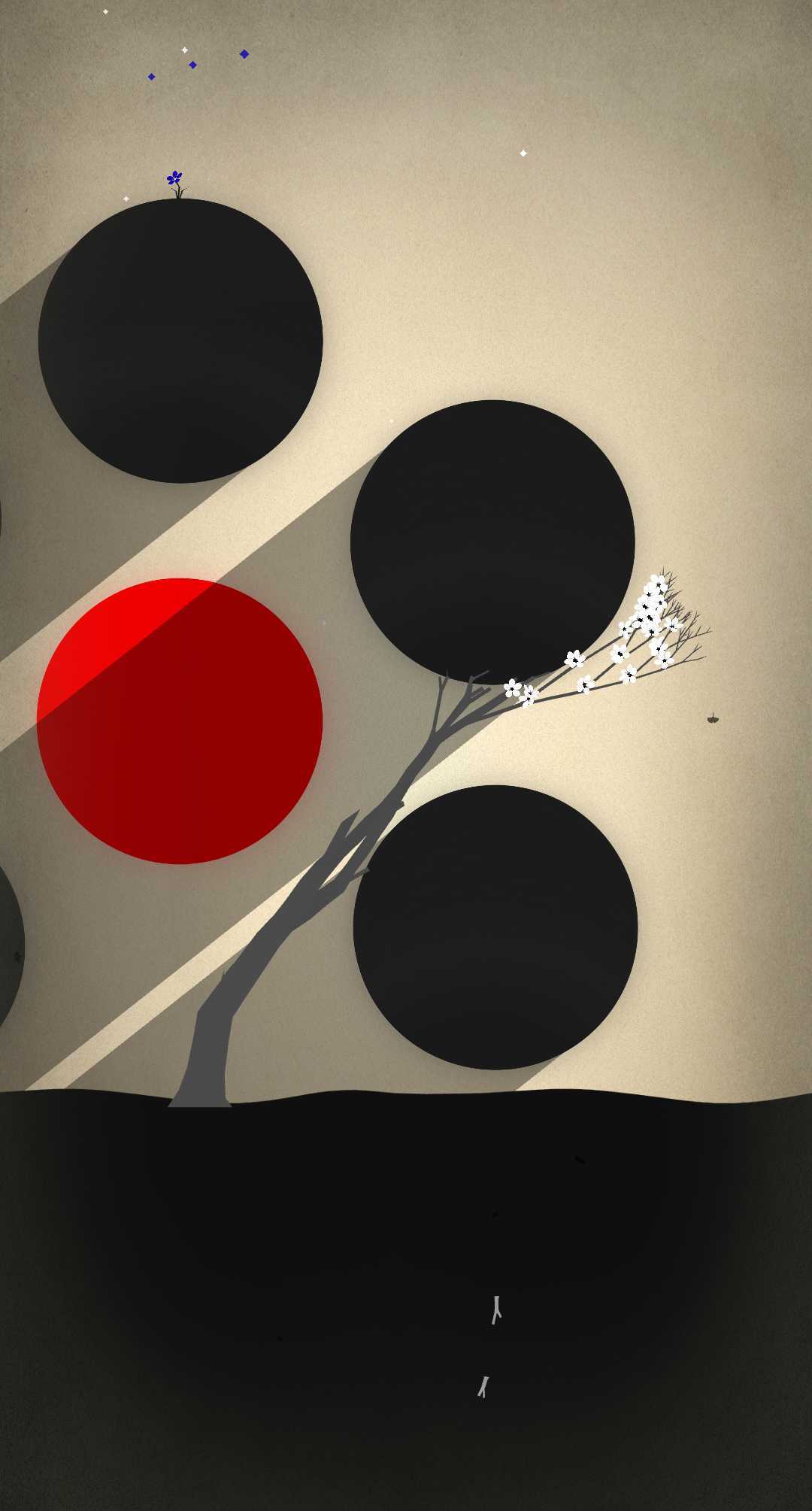 第二章出现了新的障碍——红色发光体。它和黑色的岩石不同,我们的小树触碰到它后,小树碰到部位就会慢慢变红,而且红色会不断蔓延最终导致树木死亡。这时游戏的音乐会变得低沉,而且画面中也会出现“涟漪”来提醒玩家。