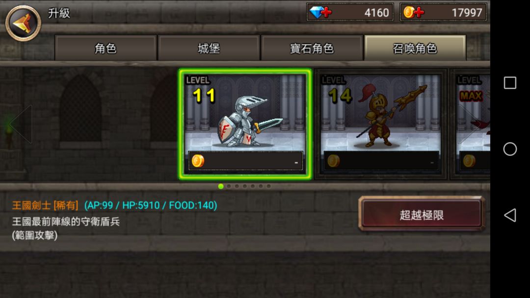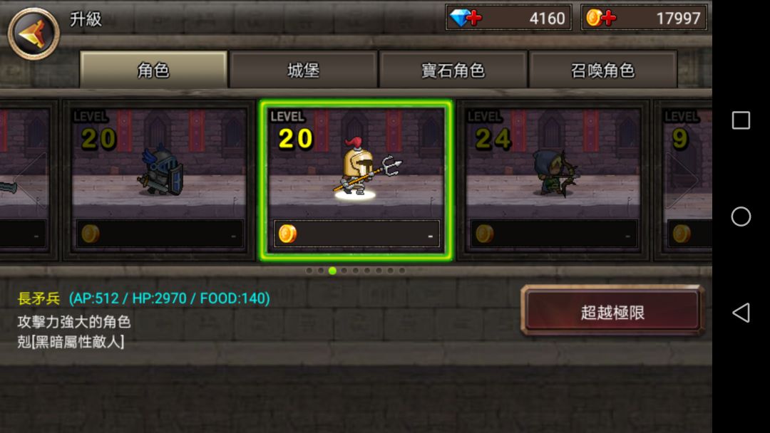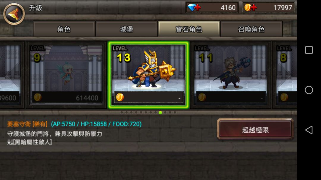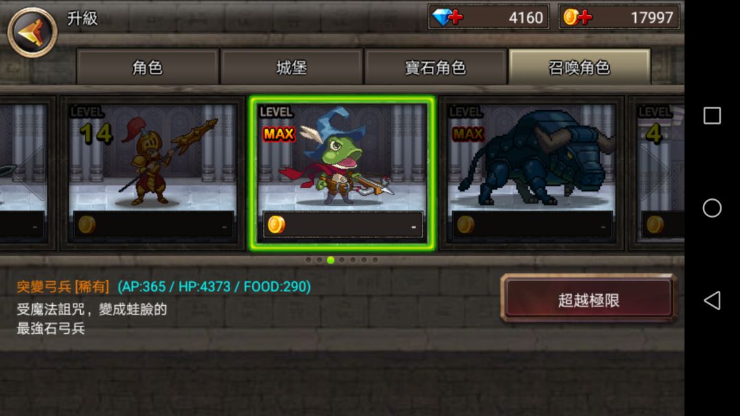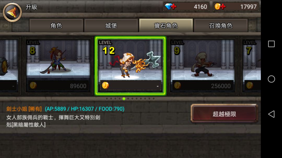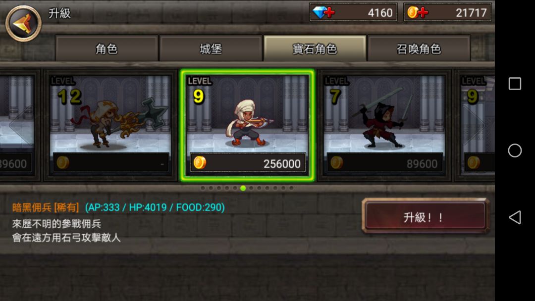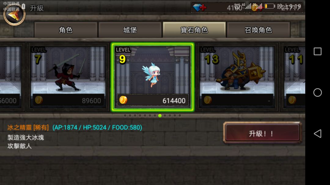 可见普通升至20级也不如10级稀有角色,但是一但到了后期,金币极多,最后一章节最后一关,一次十几万,刷上一百次,就能抽一百多次。所以从未来发展来看普通角色不比稀有角色差。