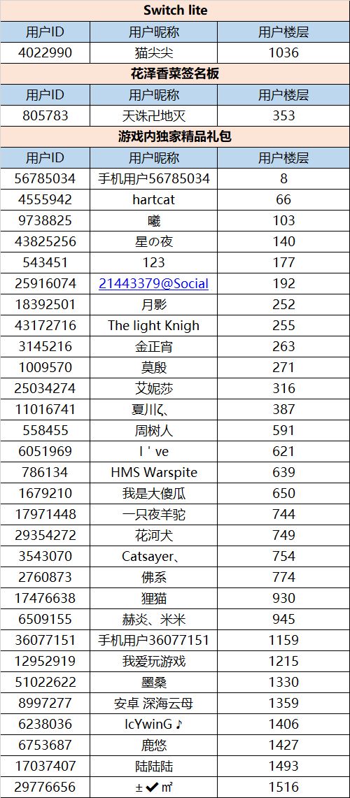 1. 同一ID可同时获得1个实物奖品及1个礼包奖品(对,只要你命够好,你又一次即能拿到Switch lite或者香菜酱的签名,又可以拿到价值不菲的礼包哟,继续当自己的欧洲人,让他们羡慕去吧!