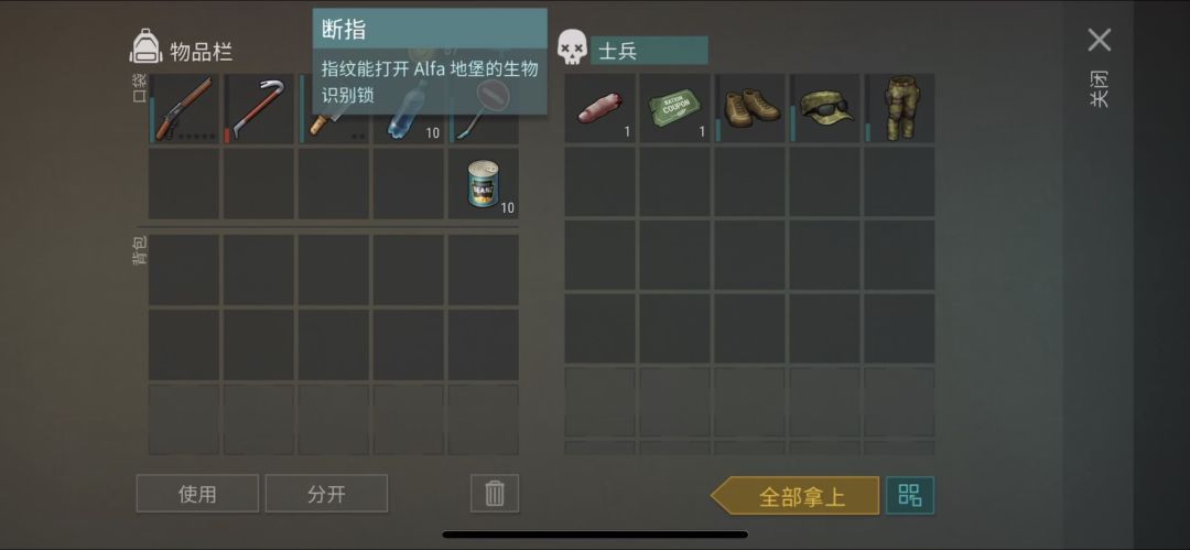 最后是A堡一层的隐藏房间开放,这里使用车队军人身上的断趾可以开启小仓库。
