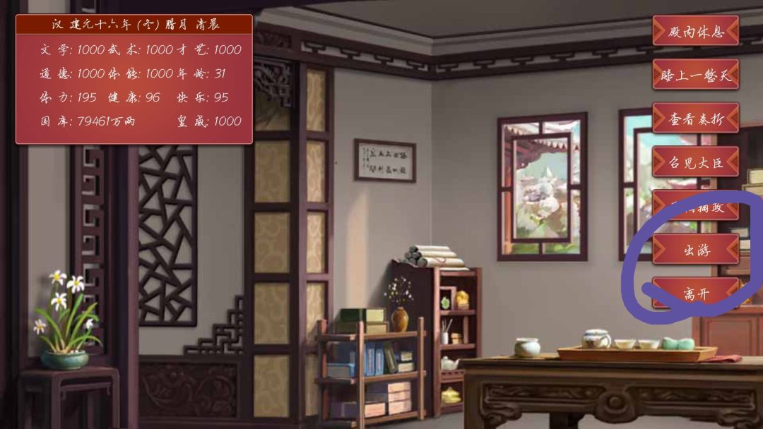 首先,出游功能在养心殿,在养心殿点击“出游”,即可使用该功能!不过要注意的是,需要等这个建筑你建造过了,才可以去这个建筑游玩。