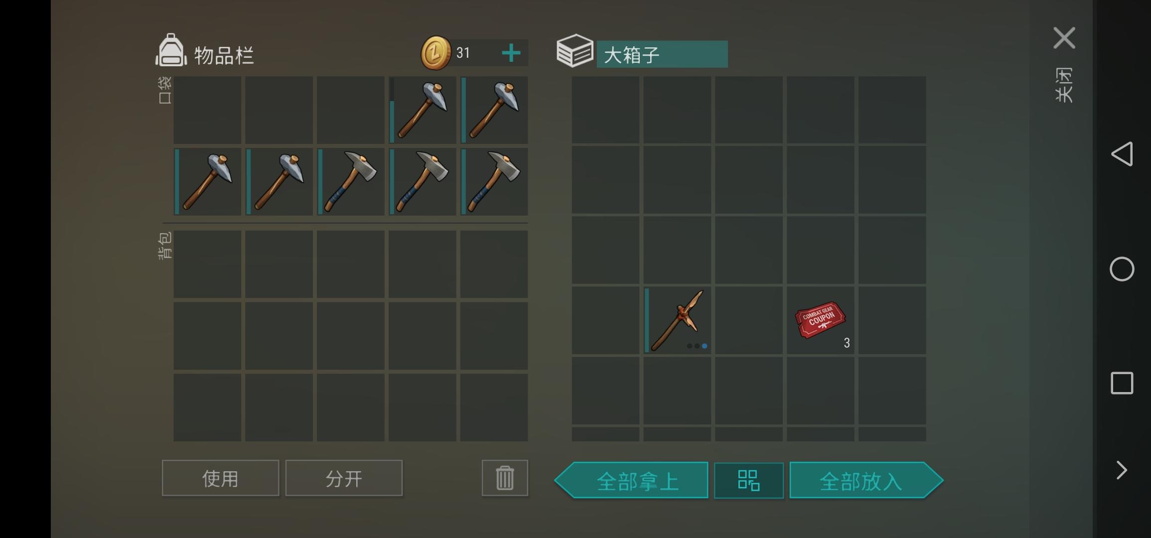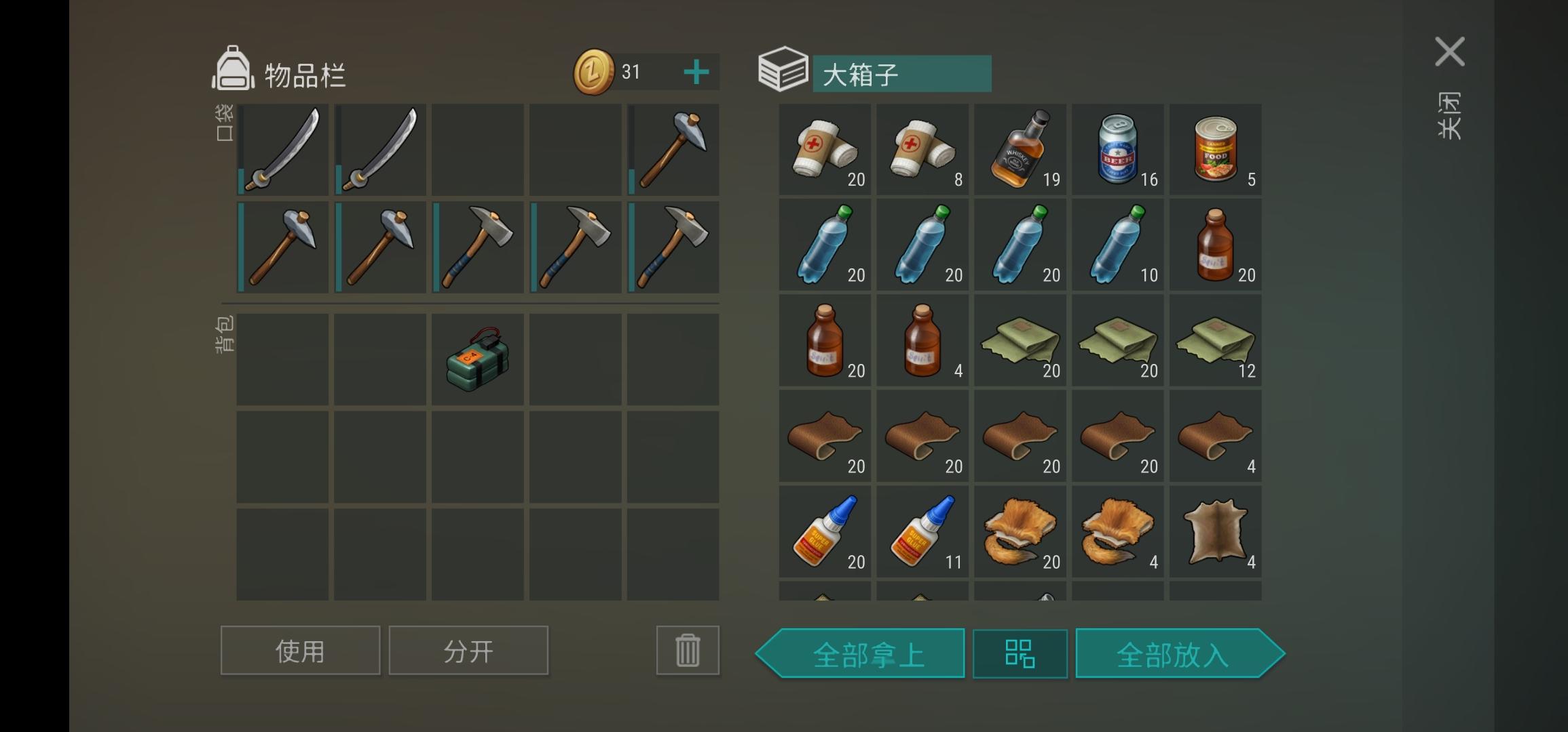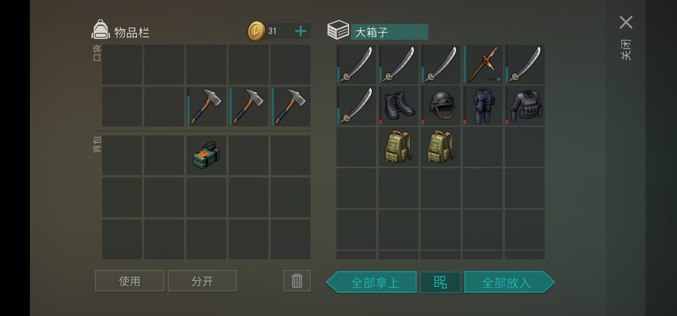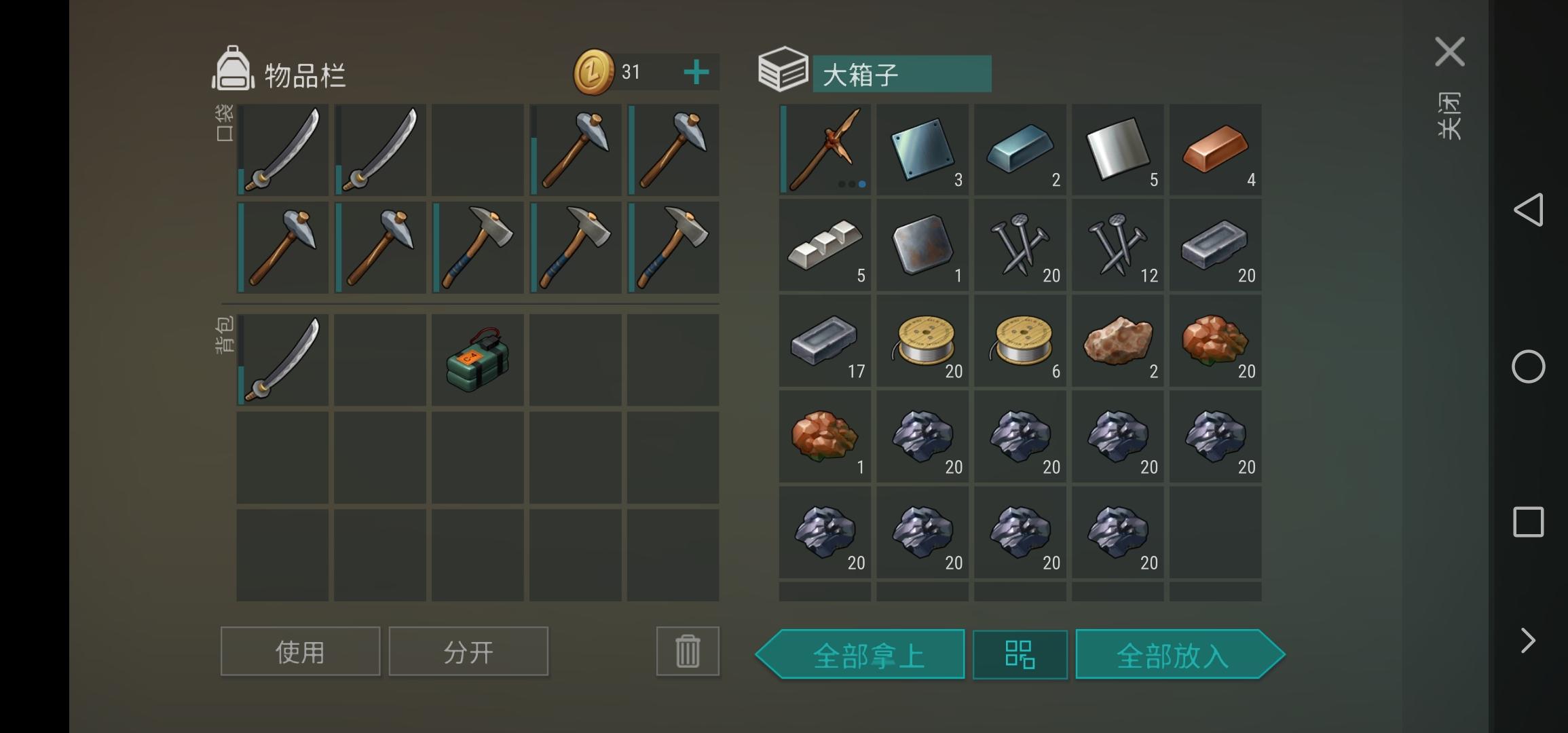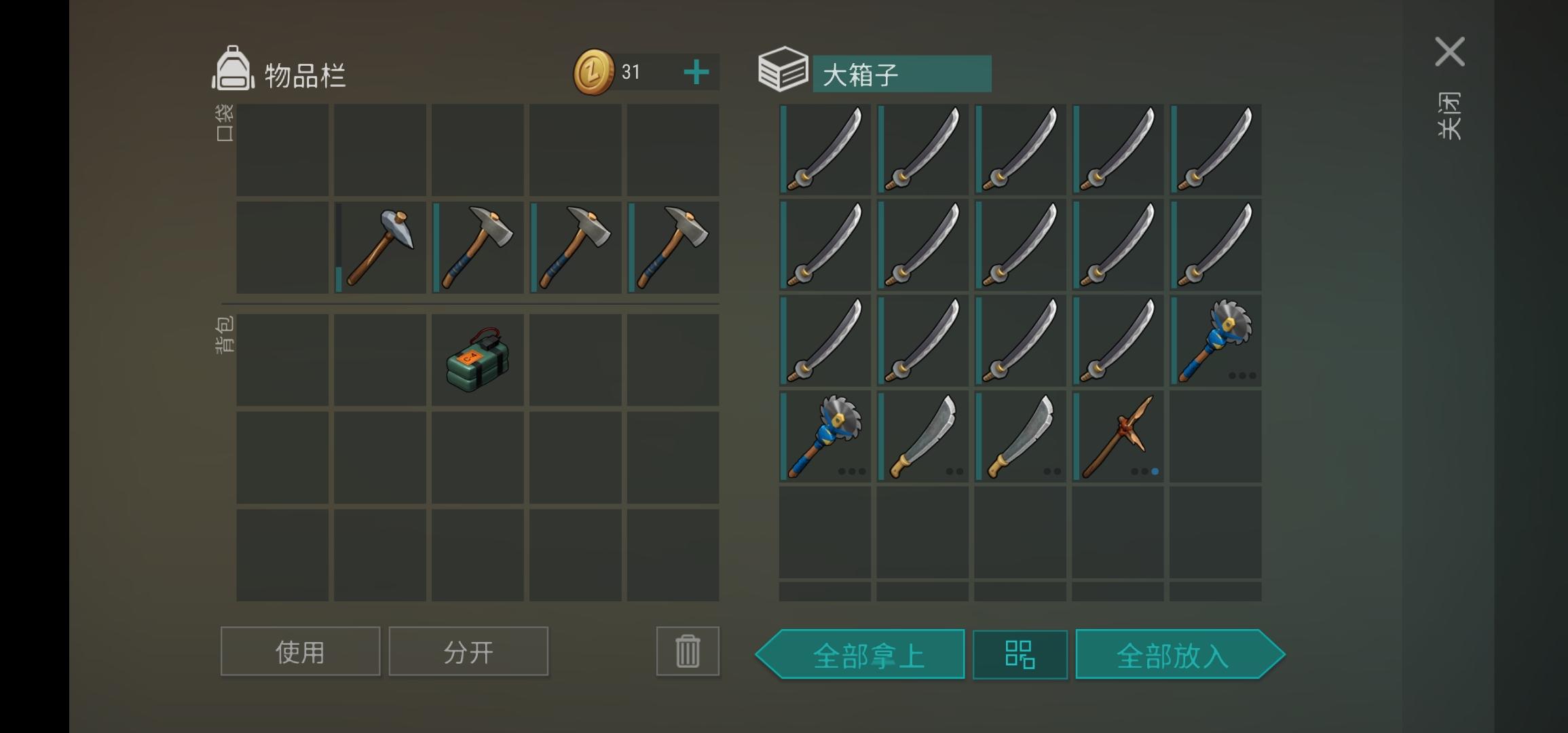 左上九格石头房内容(盒子里的木矛都是抄的我的)