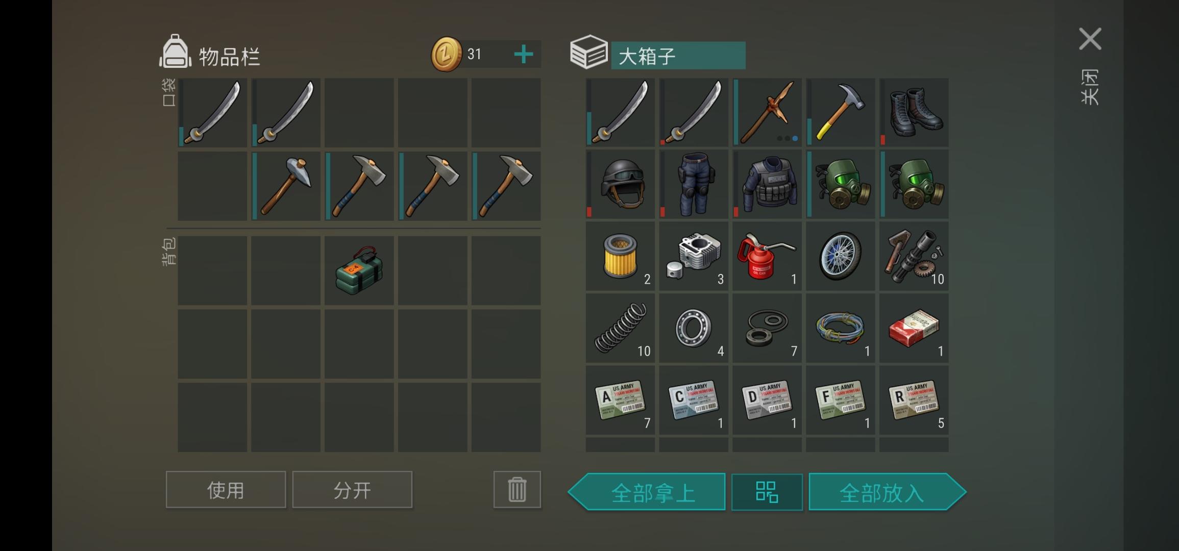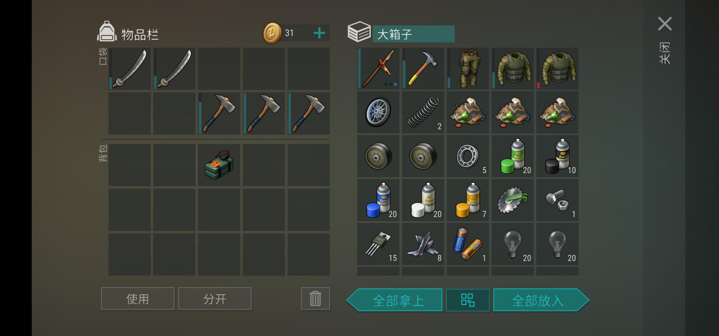 带上3个C4,若干石斧,不需要铁斧,空瓶40个。