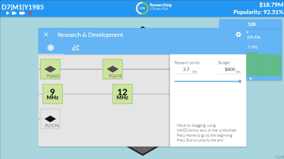 经营自己的硬件公司,参与市场竞争、保持技术领先、并促进产业革新。这款游戏已制作两年,不过现在仍处于早期开发阶段。目前可以玩的只有CPU的研发销售部分,但更多硬件和玩法内容也在规划中了。