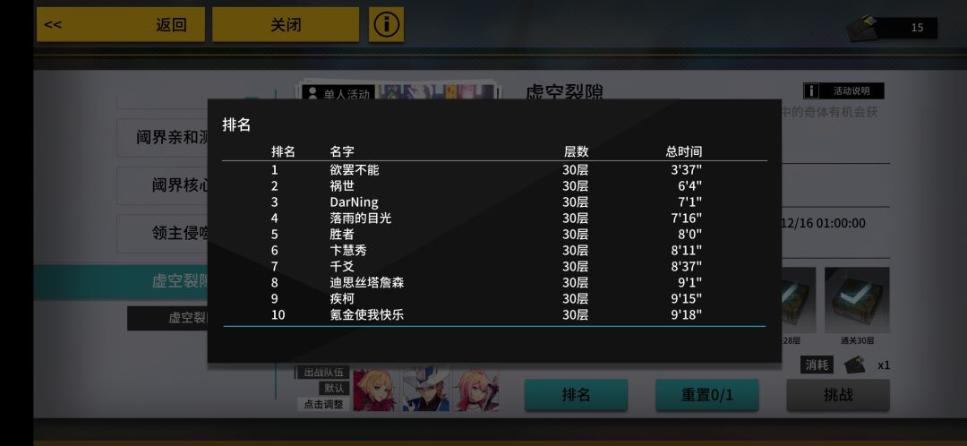 从背景能看出我30已经过了,然而底下没有我的排名,是因为黑屏bug没统计上嘛?还是过了100不显示了?有没遇到过同样问题的给解释下。最后第一是来自东方的神秘力量嘛?
