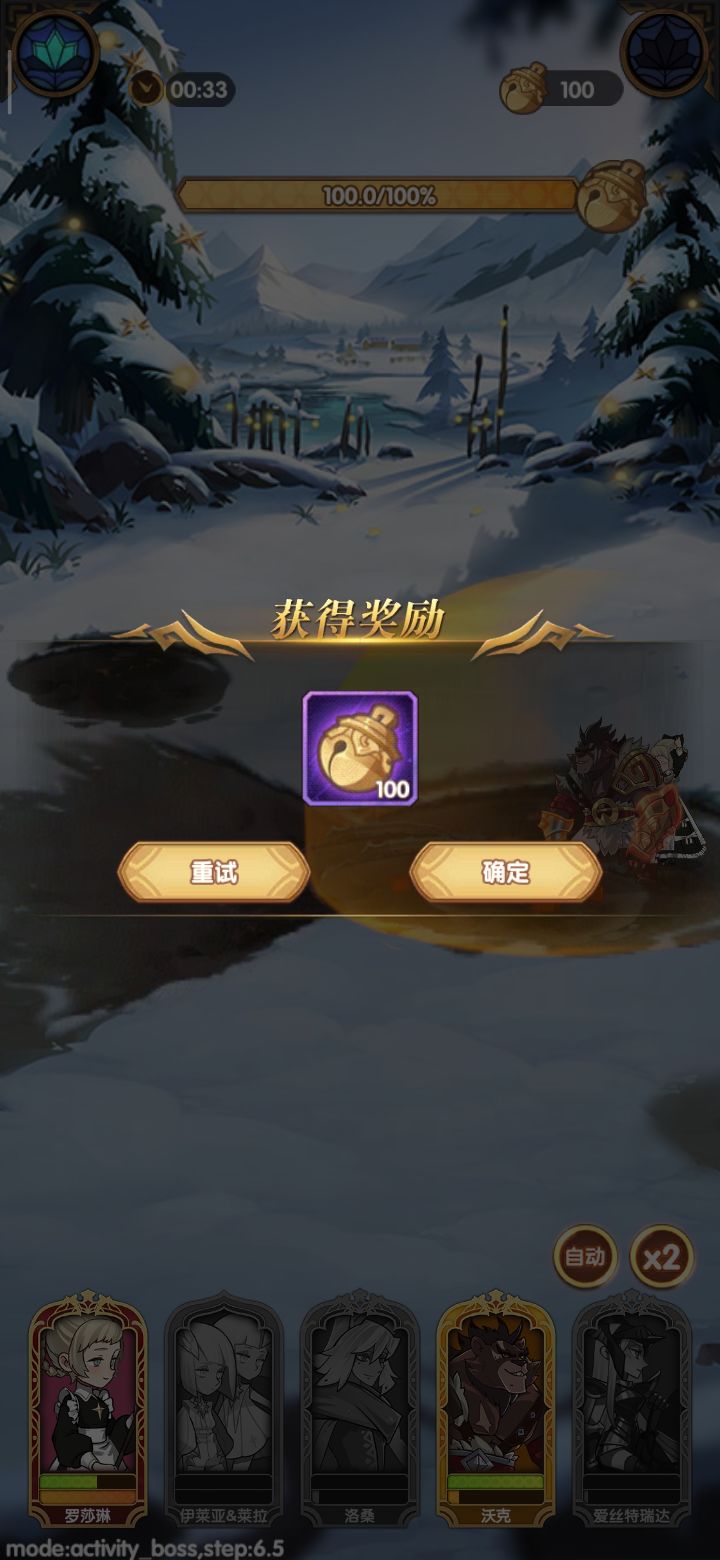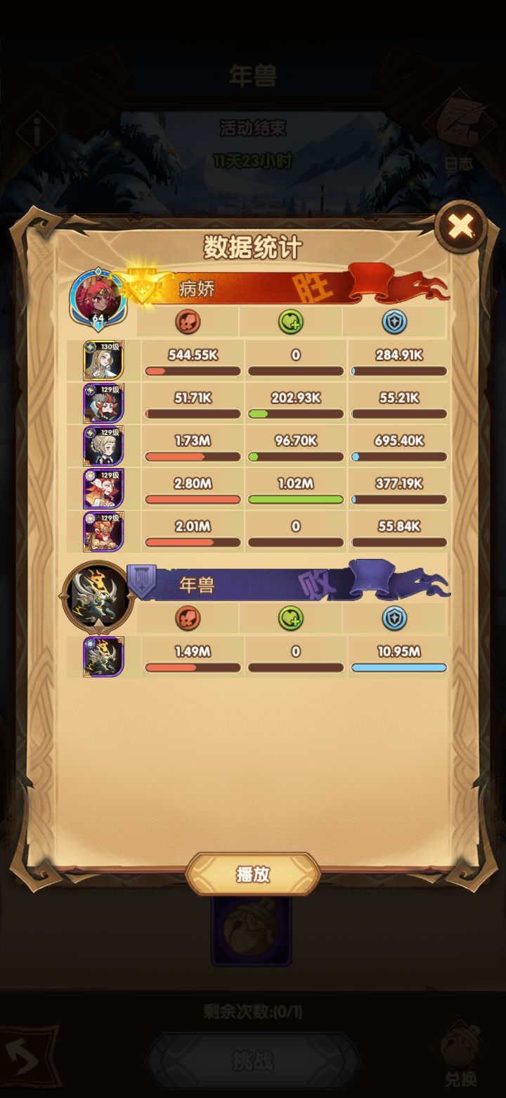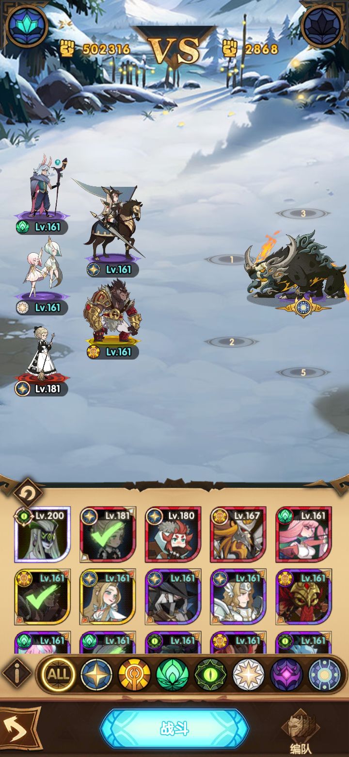 使用的阵容是这样。凤凰和猴子是输出mvp,光女是一个加破甲buff的,如果不上光女,我的女仆会跟猴子凤凰,应该是可以更快打满。