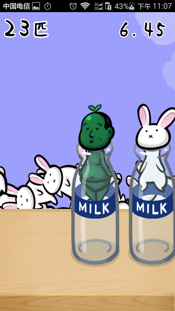 玩法也很简单,在一定时间限制内,兔子大叔向上拔(嘿咻嘿咻拔兔子嘿咻嘿咻拔大叔),白色绿色手榴弹空瓶向左移。