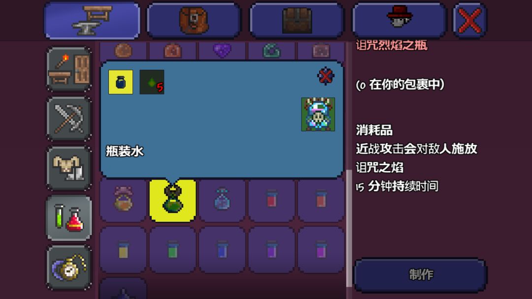 2.饰品带熔岩石增加伤害,没有的话做一瓶咒火瓶