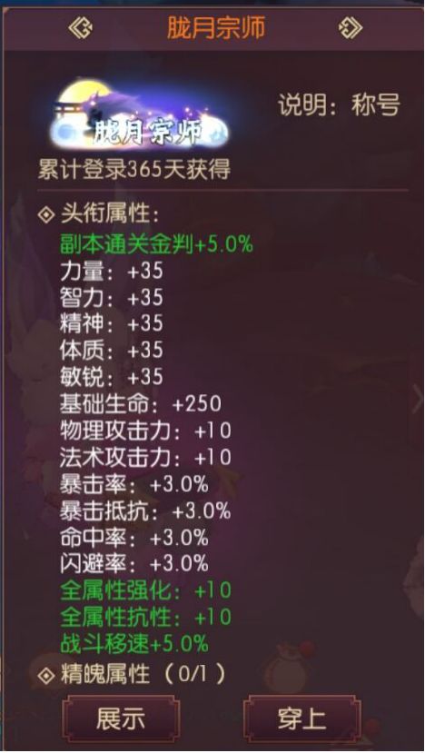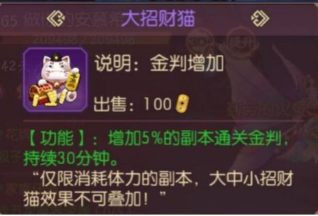 副本通关金判+10%更是不用说,招财猫+365天成就称号才有的效果;