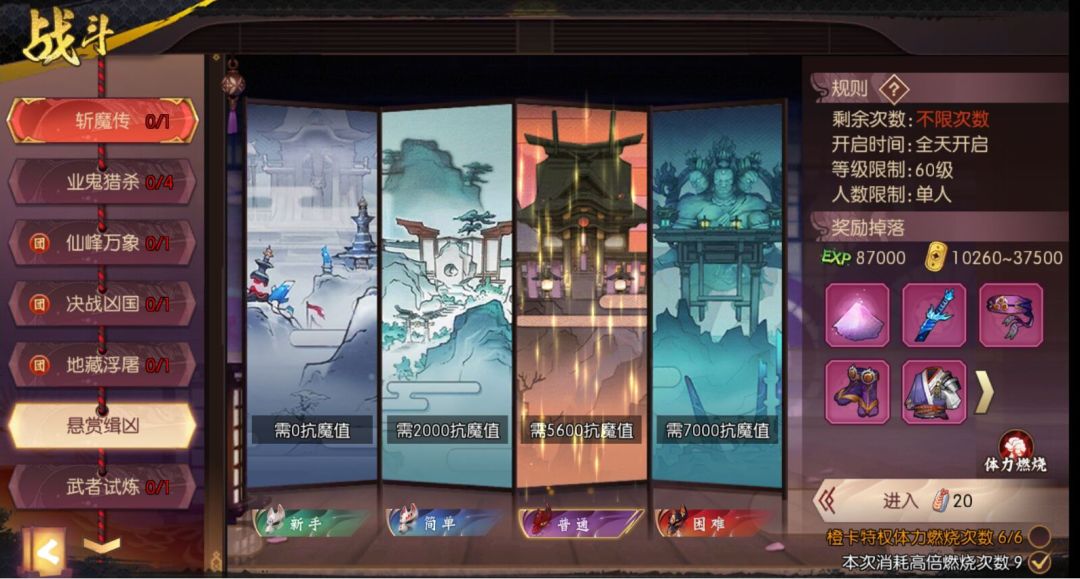 系统公告:“玩法改版为4个难度,达到抗魔值条件后玩家可以自由选择不同难度的副本挑战,难度越高,获得的金判奖励越多。” --3.11