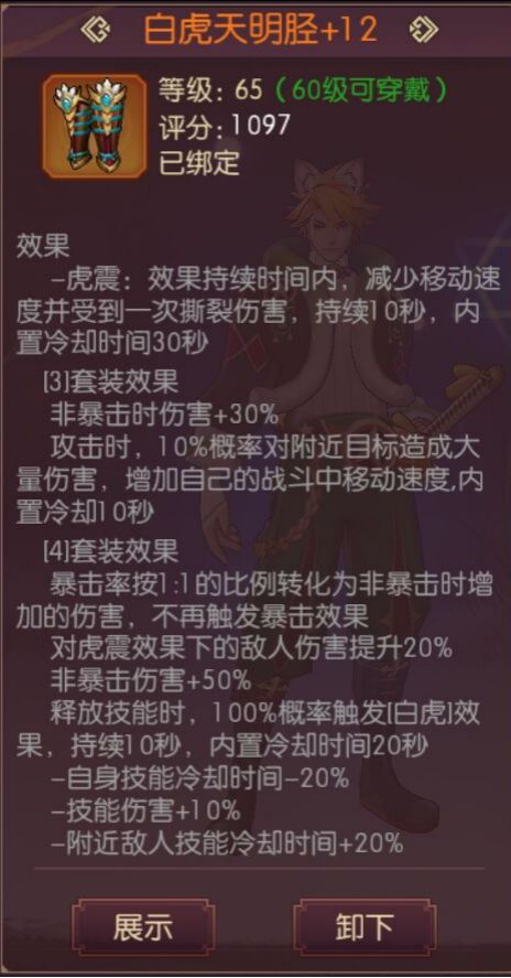 在防具选择上,65深渊套当然是星辰伤害最容易达标,但是我建议如果有意愿做四象的,还是以坚守为主,经过实测,坚守四件套,对于没有暴击基础的小号,伤害同样不俗,而且白虎的鞋子多加5%的移速,白虎套冷却快,也有移速buff,对于没有基础的小号伤害也是最好的。当然对于自在属强的职业(如贺隐、寒策),可以选做冥炎套,伤害在悬赏内就可以轻松爆炸。