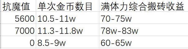 可以清晰看到的是,改版之后,悬赏的收益有了明显的提升,特别是7000抗魔值的副本,而事实上,在考虑到碰到魔界深渊的情况下,满体力悬赏收益会更高,甚至满体力(默认120,实际上橙卡会更高)7000抗魔每天单角色悬赏收益可以到90w+。