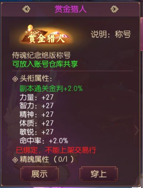 3.默认悬赏使用金判猫buff且佩戴具有金币加成效果的称号;