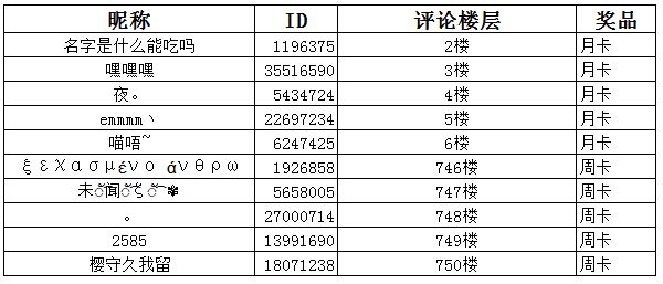 【情人节活动】中奖名单~