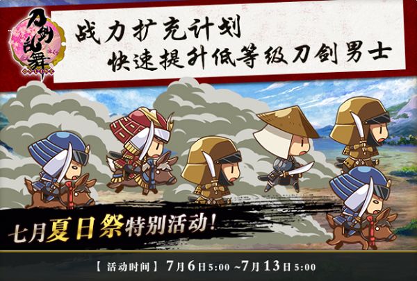 从7月中旬起将陆续推出刀剑男士的「极」化,夏日祭活动之刀剑男士育成首次开启,【枪·日本号】限时锻刀开启,全新景趣“夜樱庭院·弦月”登场。详情如下: