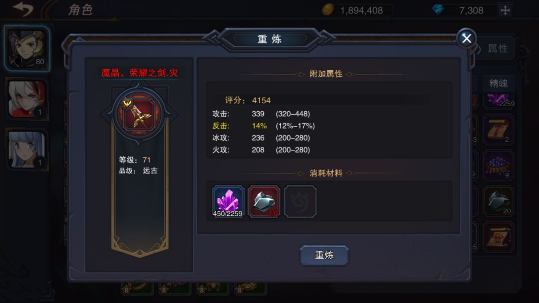 4.远古装备开放重炼功能,需要消耗材料远古星尘。