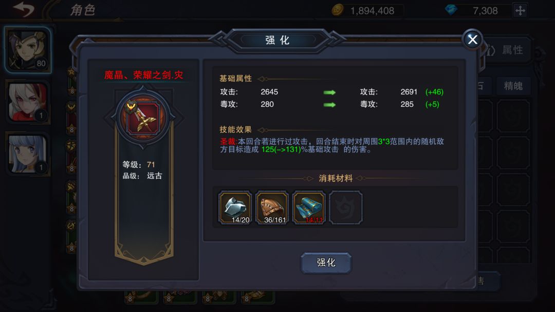3.远古装备增加强化选项,通过消耗材料进行强化,提升其基础属性和技能效果.