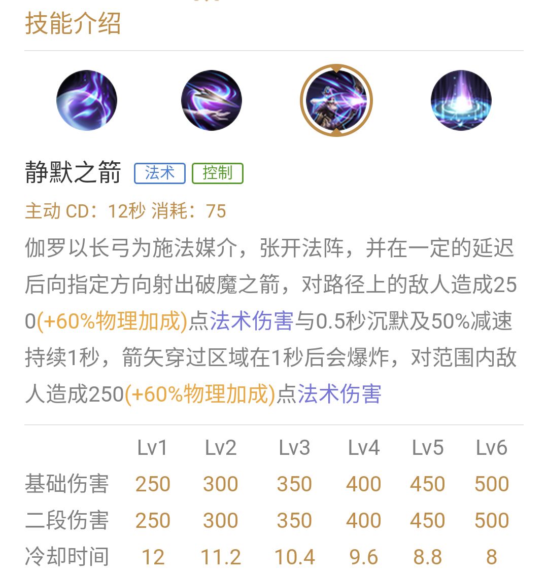 这个技能很强,回蓝,加射程,有法术伤害,法术伤害不算高,不过还算可以。六神装备打出来的法术伤害800多。