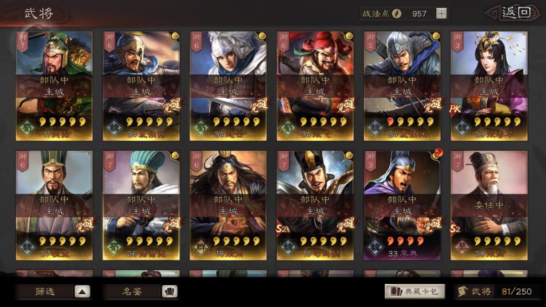 以下是将和S战法,A战法都有,紫将朱俊郭淮都有满红的