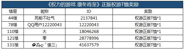 【获奖名单】《权力的游戏 凛冬将至》意见反馈集中帖,不限量正版周边等您拿哦!