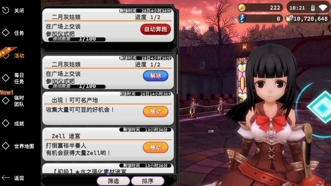 “导航”→“活动”→“二月灰姑娘”→“承接”→“自动奔跑”,移至