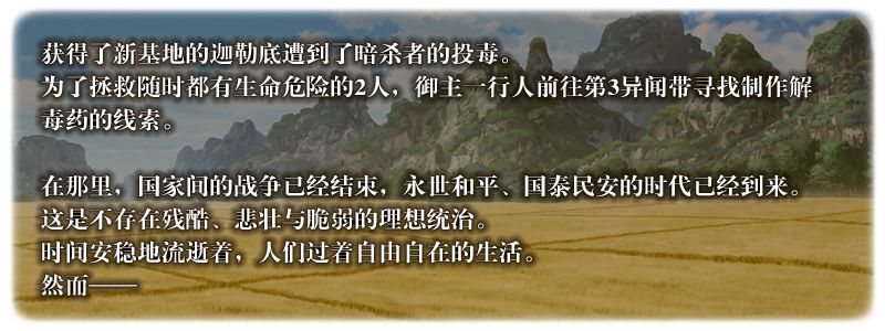 请享受由剧情作者虚渊玄(Nitroplus)带来的以第3异闻带为舞台的「第2部 第3章」的故事吧!