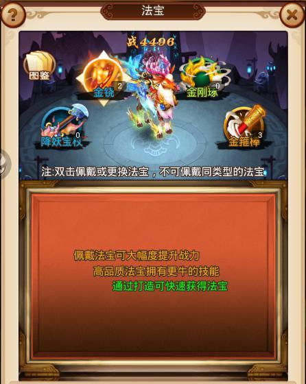 西游里法宝可直接提升战力!对提高英雄的各项属性有着很大的帮助!
