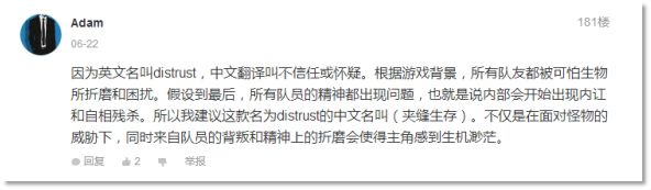上周Distrust手游版中文名征集活动已经顺利结束,我们收到了一大批优秀的建议,