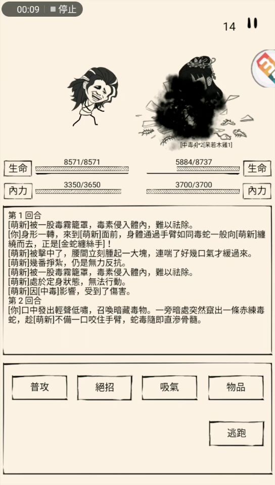 如果11回合结束前你叠到了毒,恭喜你中奖了,12回合:毒爆(造成大量伤害同时回满血),龙打你,你残血---13回合:升龙拳