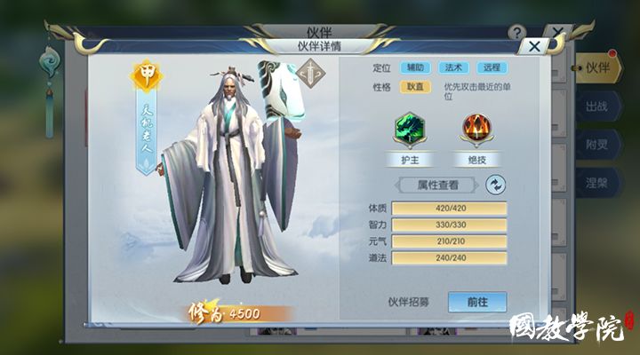 在圣级伙伴难以获得的情况下,甲级伙伴就成了我们的首选。天机老人的绝技天石大阵是非常稀有的,可以提供回复的绝技,对于青曜十三司这样的门派来说,相当于多了一个回复型技能,可以更好的为队友保驾护航。